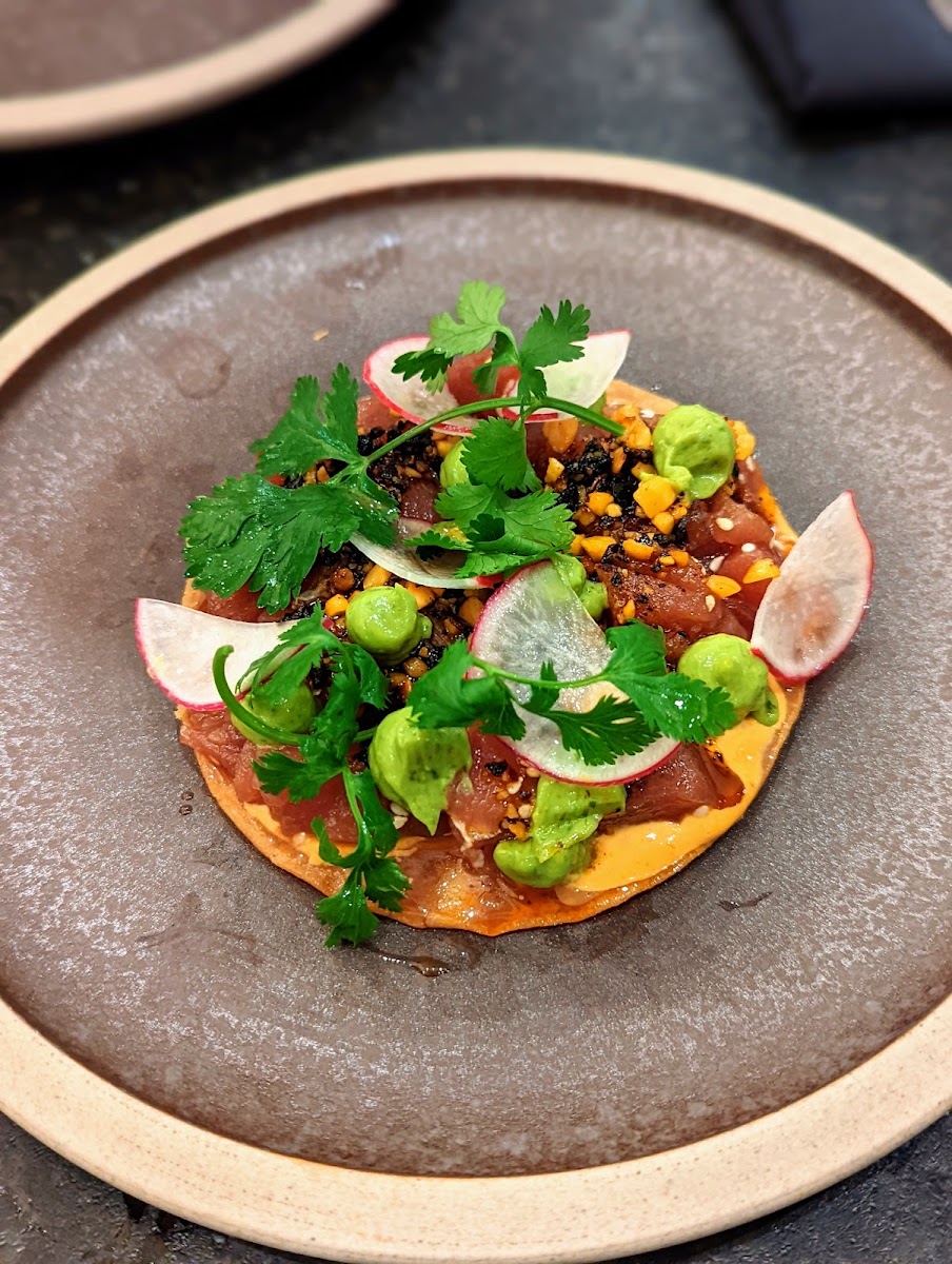 Menu is a bit complicated, and the dishes came out a bit sporadic but overall tasty stuff.. loved the guacamole, salsa tasting was nice, and the duck tacos were a hit. Wasn't a fan of the Scallop crudo as it was very sauce heavy and overpowered the scallops. Cod was really good. Our server was wonderful and attentive. The decor is pretty too..